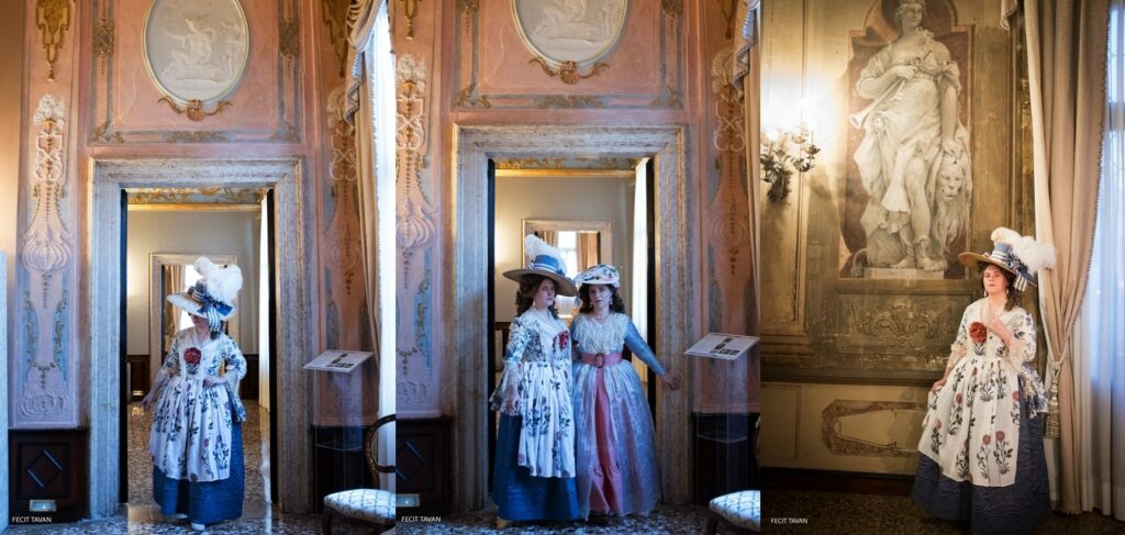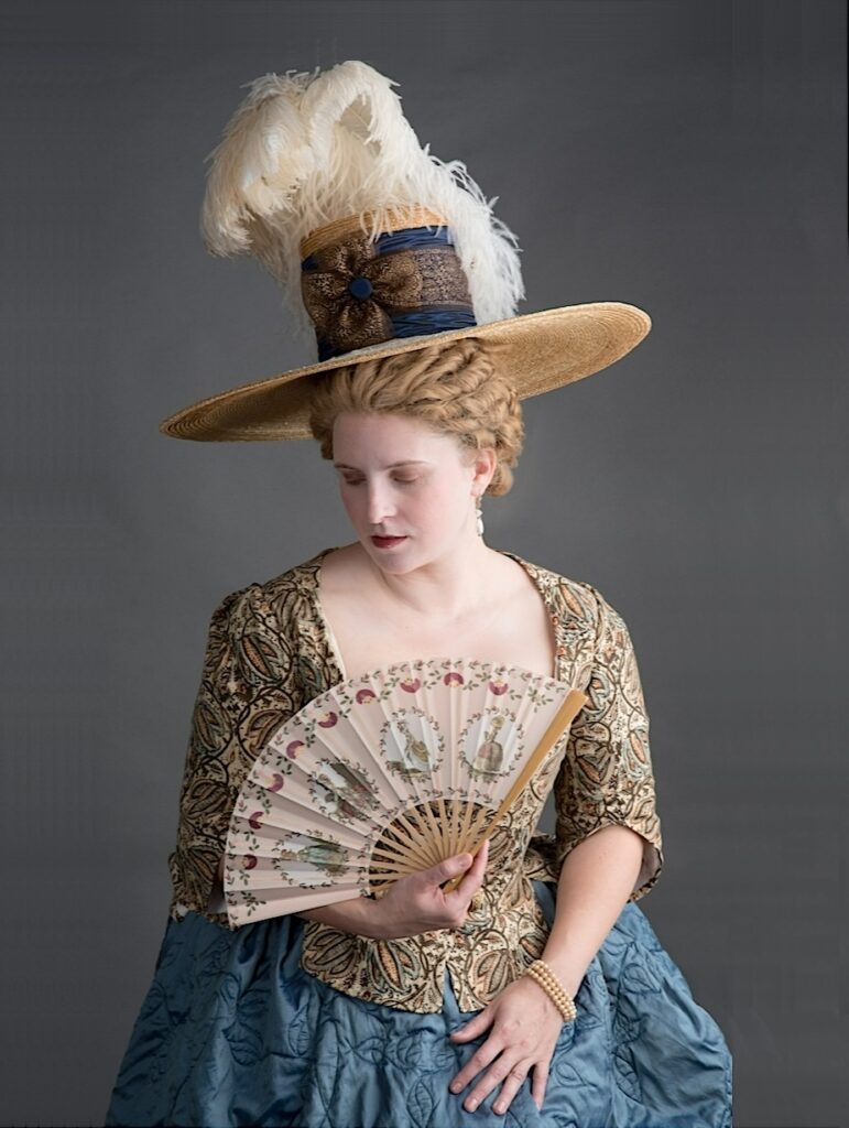 Laurie and Robbin modeling a redressed version of the same straw hat in a period setting.