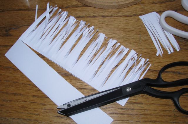 paper trimmed with regular scissors down to about 1/4″ from the cuts