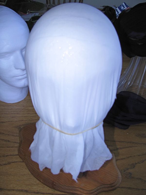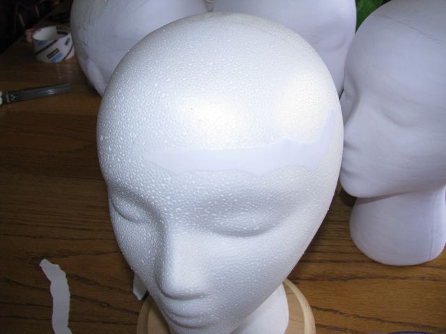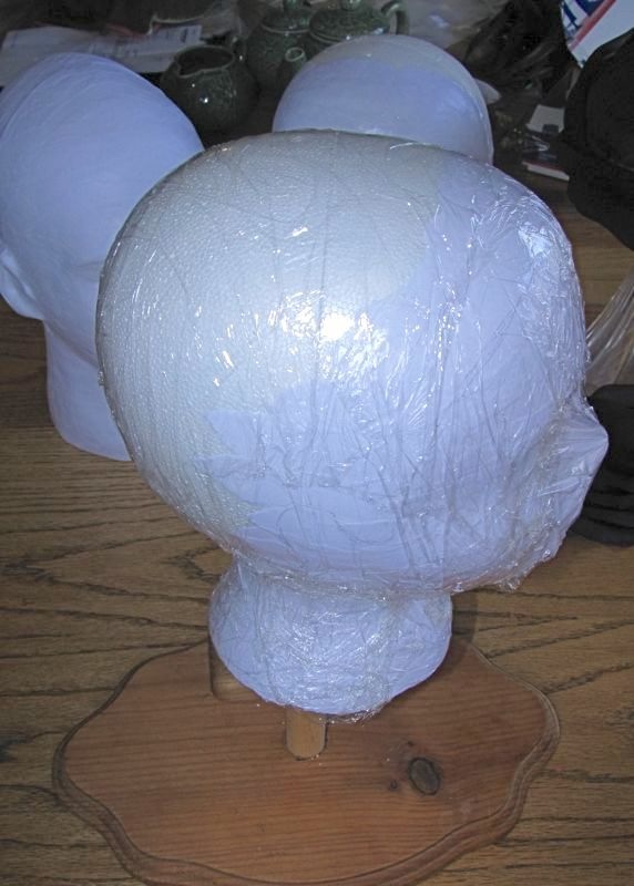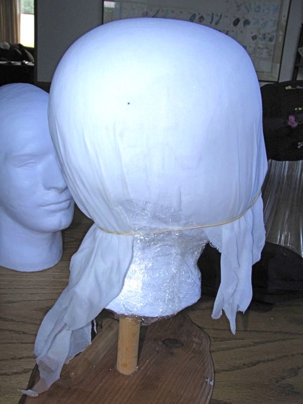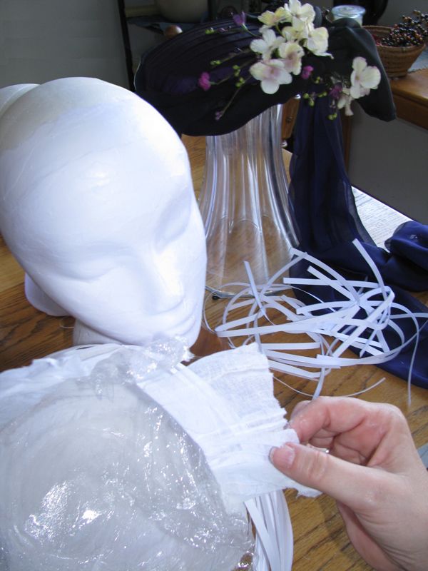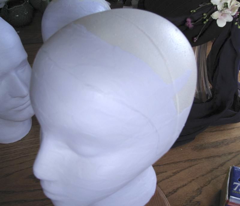 In some cases either the hairstyle or the hat will call for some fullness. Most Styrofoam heads are 21 or 22” head size so if you have a larger hat you need to add padding to the head so the hat will not look too big. I used a couple different techniques to do this.