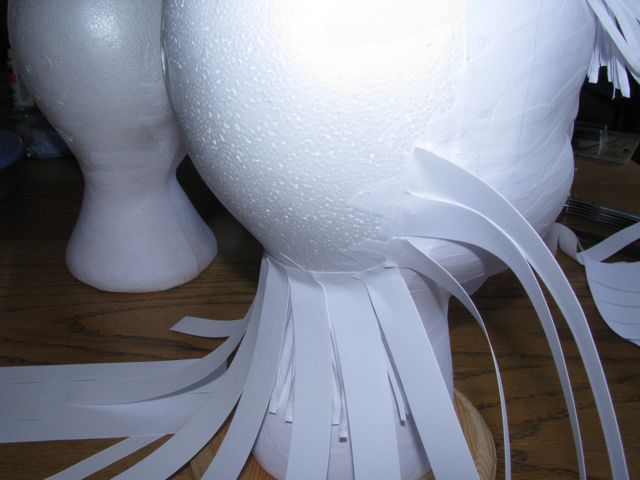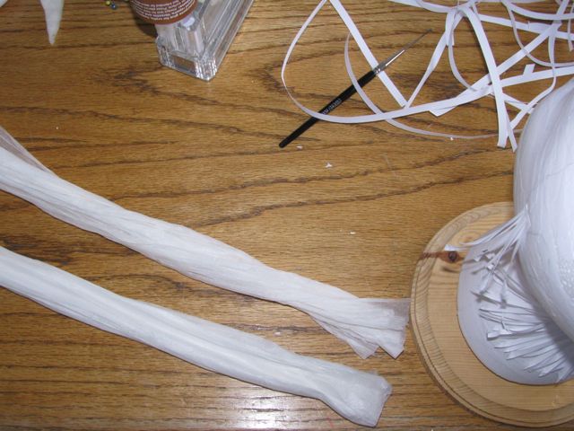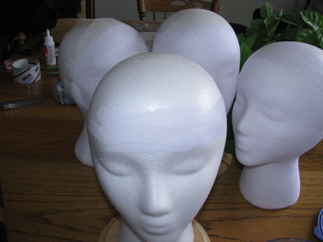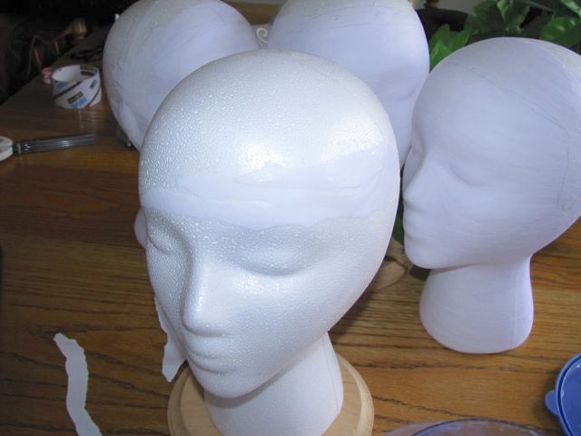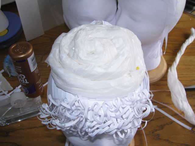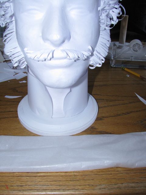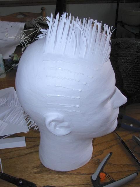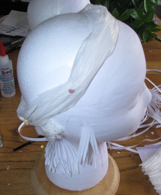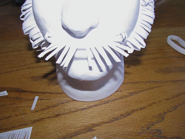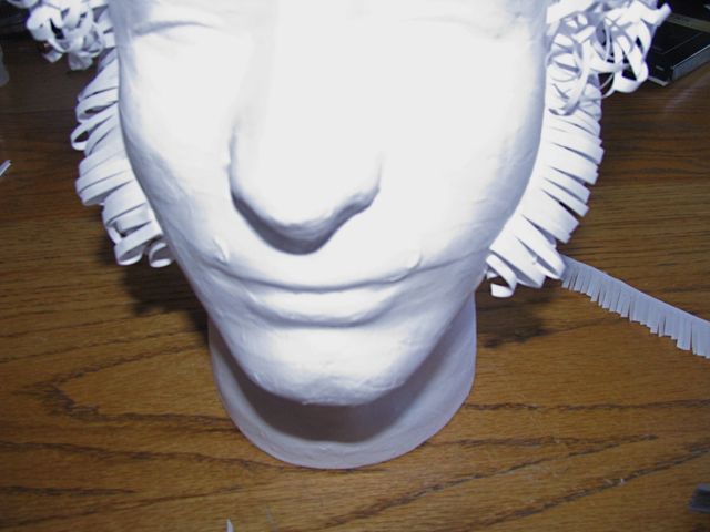 2) Another method I used to pad out the heads was to add tissue paper that was lightly pleated up and twisted to form long coils that where then glued to the head where needed.