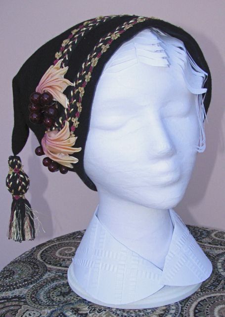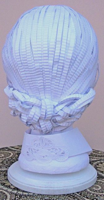 1860s hat from the back besides the strips there is padding under so that the snood puffs out.