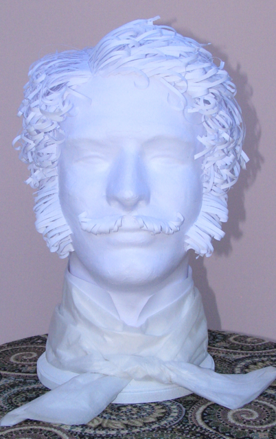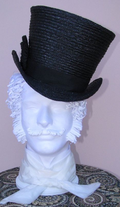 The Victorian man has a high paper collar and a cravat made from tissue paper.