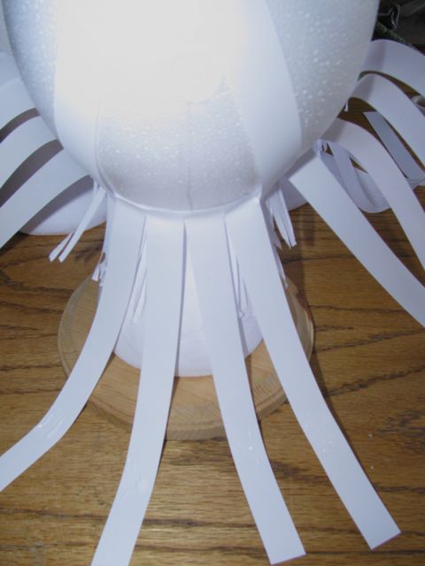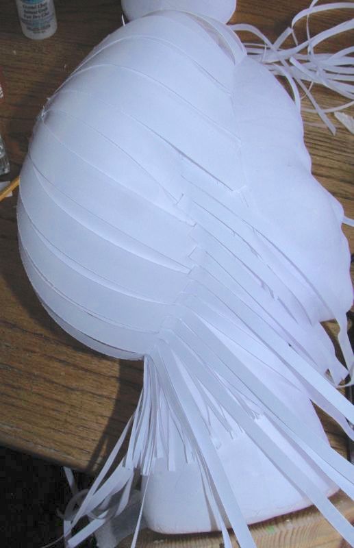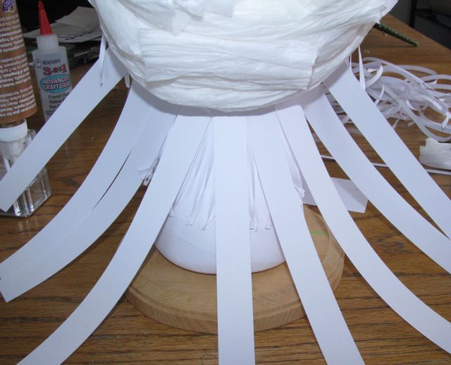 The strips are spiraled around the cone to cover itand the end is glued in place. The head as seen from the underside.