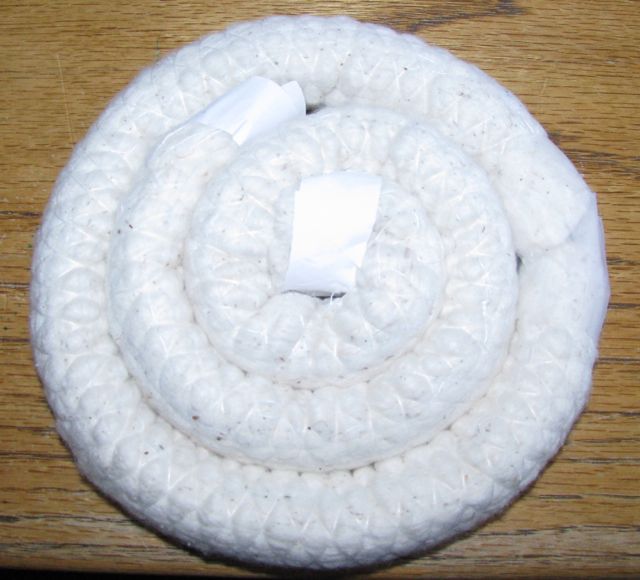 Two pieces of tissue paper folded and twisted to form two long 1′ pads.