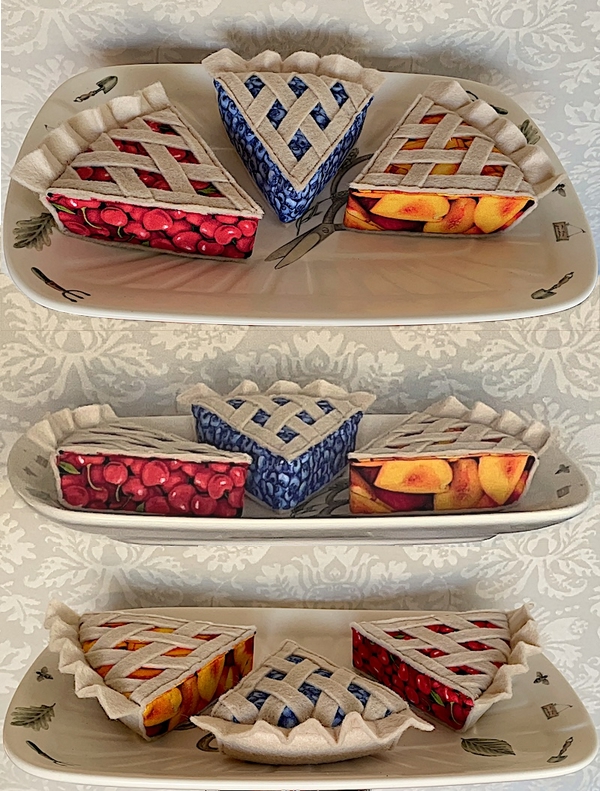 Below you can order a piece of fabric for the cotton fabric part of the pie, the filling on the side and the filling under the lattice. This will save you from buying a half to a full yard of the fabric If you are only going to make one pie or three pies each with a different filling. The supplies are limited.
